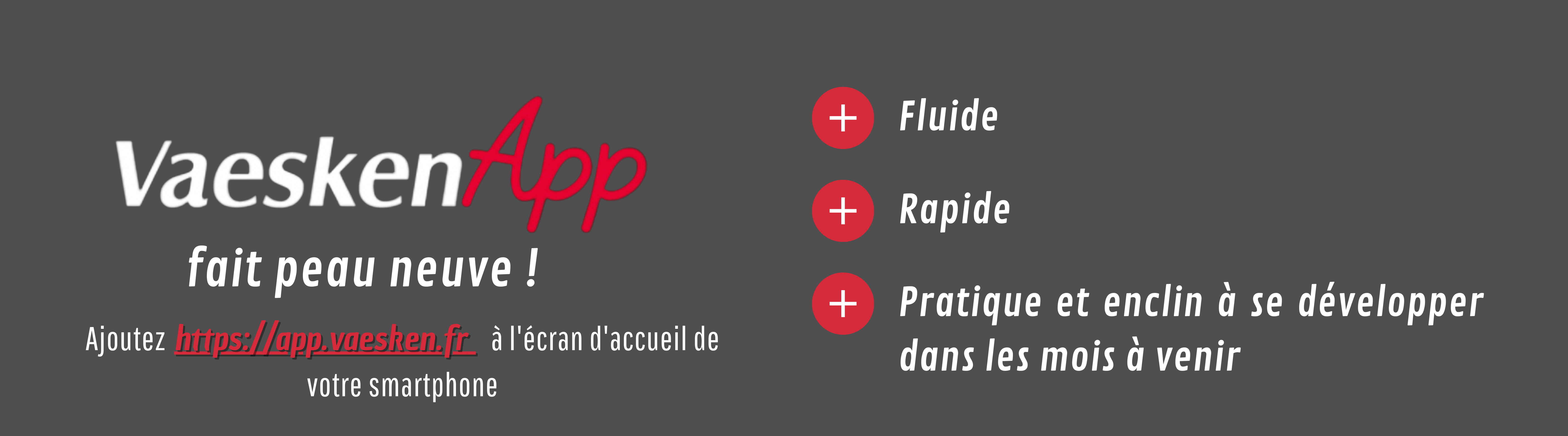 Nous sommes heureux de vous annoncer que nous avons développé une version plus fluide, plus rapide et qui permettra de développer de nouveaux outils sur Vaesken’App ! Cette version est disponible dès aujourd’hui !