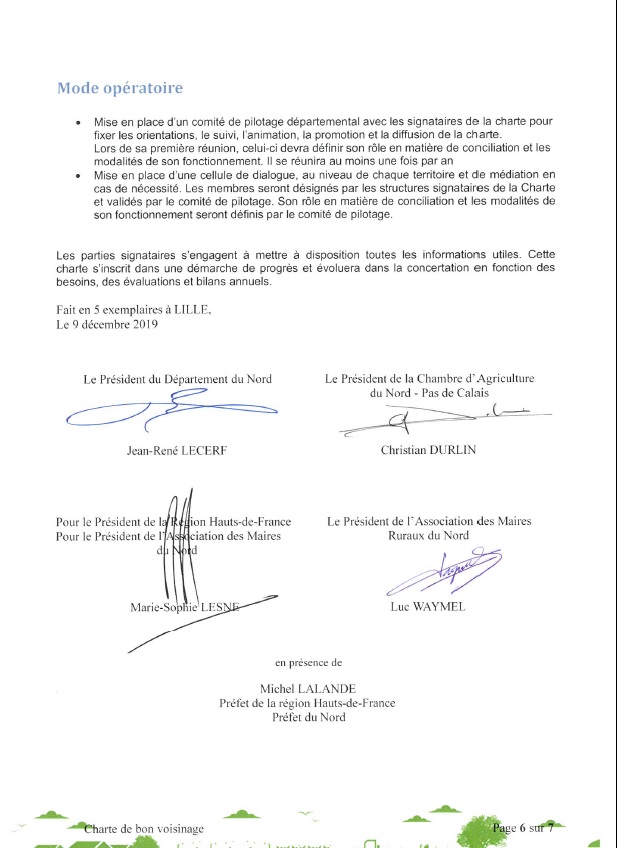Retrouvez la charte de bon voisinage des HAUTS DE FRANCE signée le 9/12/19